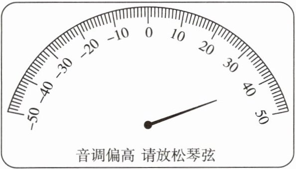举一反三 某古筝调音器软件调音时的界面如图所示. 已知古筝是标准音时,界面指针指向 $ 0 $,指针指向 $ 40 $ 表示音调高于标准音 $ 40 $,需放松琴弦. 当古筝的音调低于标准音 $ 30 $ 时,该界面指针指向的数字是(