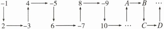 (2)观察不难发现,向下箭头的上方的数是负数,下方是正数,向上箭头的下方是负数,上方是正数,所以负数排在A,B,C,D中的B和D位置处.