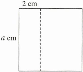 4. 如图,从一张边长为a cm($a > 2$)的正方形铁皮上截去一个2 cm宽的长方形铁皮,则剩余