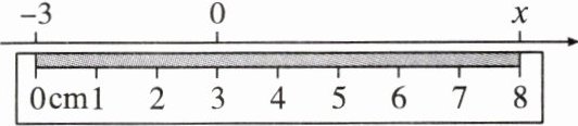 6. 如图,将一刻度尺放在数轴上(数轴的单位长度是1 cm),刻度尺上“0 cm”和“8 cm”分别对应数轴上的 -3 和x,那么x的值为