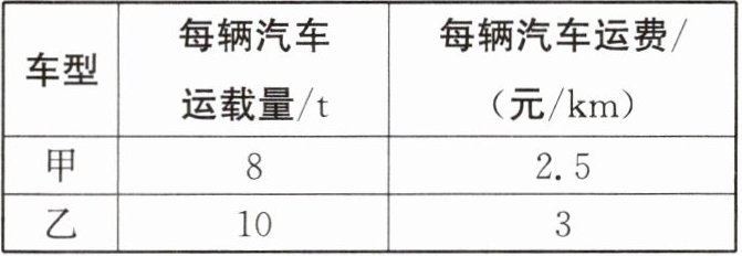 (2)从产地到该水果市场的距离是400km,今年有甲、乙两种车型供选择,每辆车的运载能力和运费如下表所示:(假设每辆车均可以满载,且只能选一种车型)