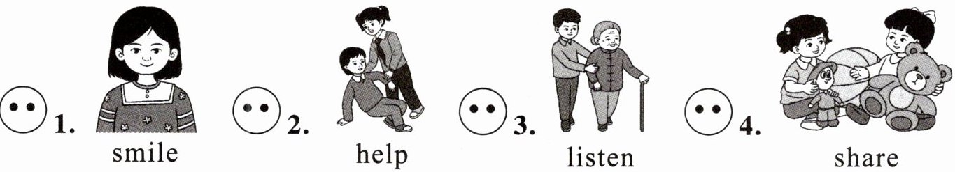 | A. I smile. | B. I listen. | C. I share. | D. I help. |