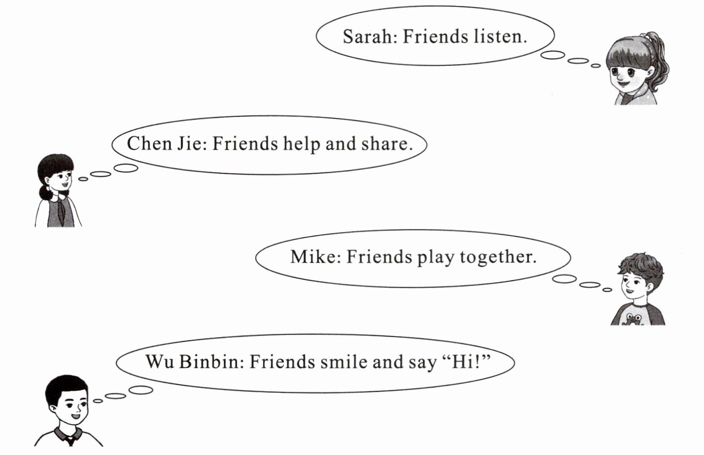 班会课上,班主任让大家讨论“What do friends do?”大家各抒己见……