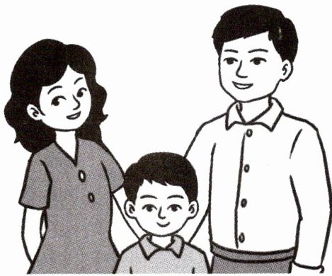 Ⅴ. Read and choose. (Li Hua 正在介绍自己的全家福,根据图片,选择正确的单词补全短文。)