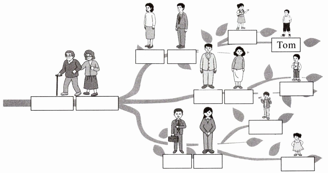 Ⅳ. Look and make Tom's family tree. (请帮汤姆完成他的家谱。)