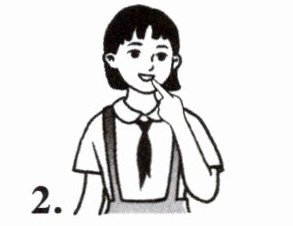 )Point to your mouth. (