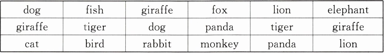 Ⅱ. Count and write. (数一数下面表格中相同的单词有多少个,将数量用阿拉伯数字写在相应的图片下面。)