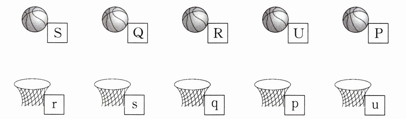 Ⅲ. Look and match. (篮球会投到哪个篮球筐?将相应的大小写字母连线。)