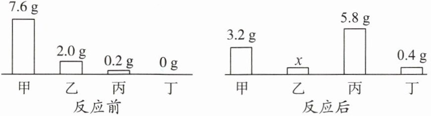 5. 在一定条件下,甲、乙、丙、丁四种纯净物在密闭容器中充分反应,反应前后各物质的质量如图所示。下列说法不正确的是(