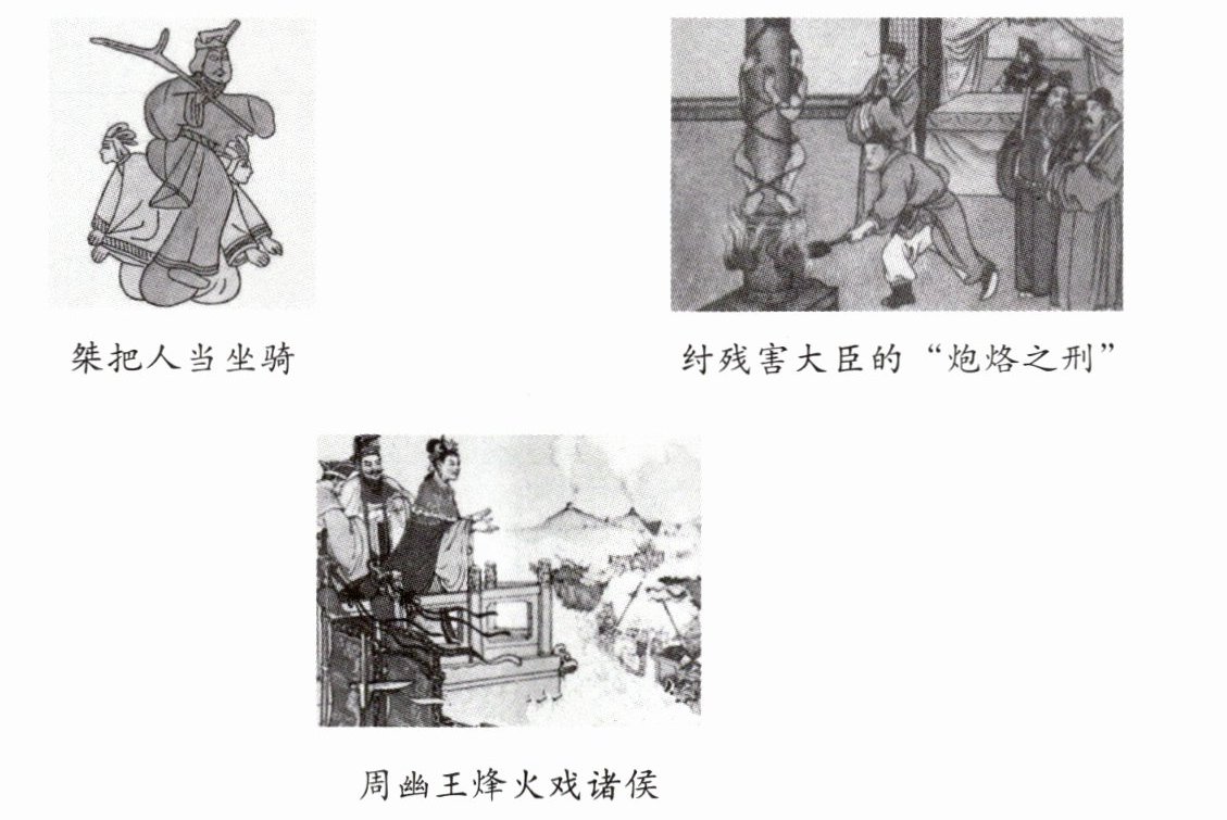 (3)上面三幅图片揭示了夏、商、西周三朝灭亡的共同原因是什么?我们得到的最主要的启示是什么?