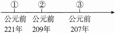 (2)根据所学知识,归纳下图中①②③时间点秦朝发生的重大事件。