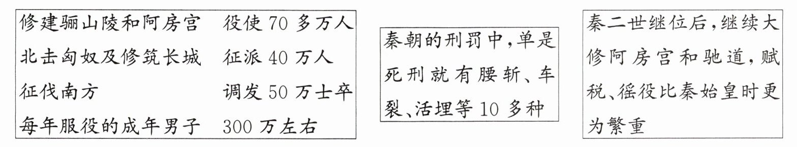 (1)事件:陈胜、吴广起义。原因:徭役、兵役繁重;赋税沉重;刑罚残酷;秦二世的统治更加残暴。