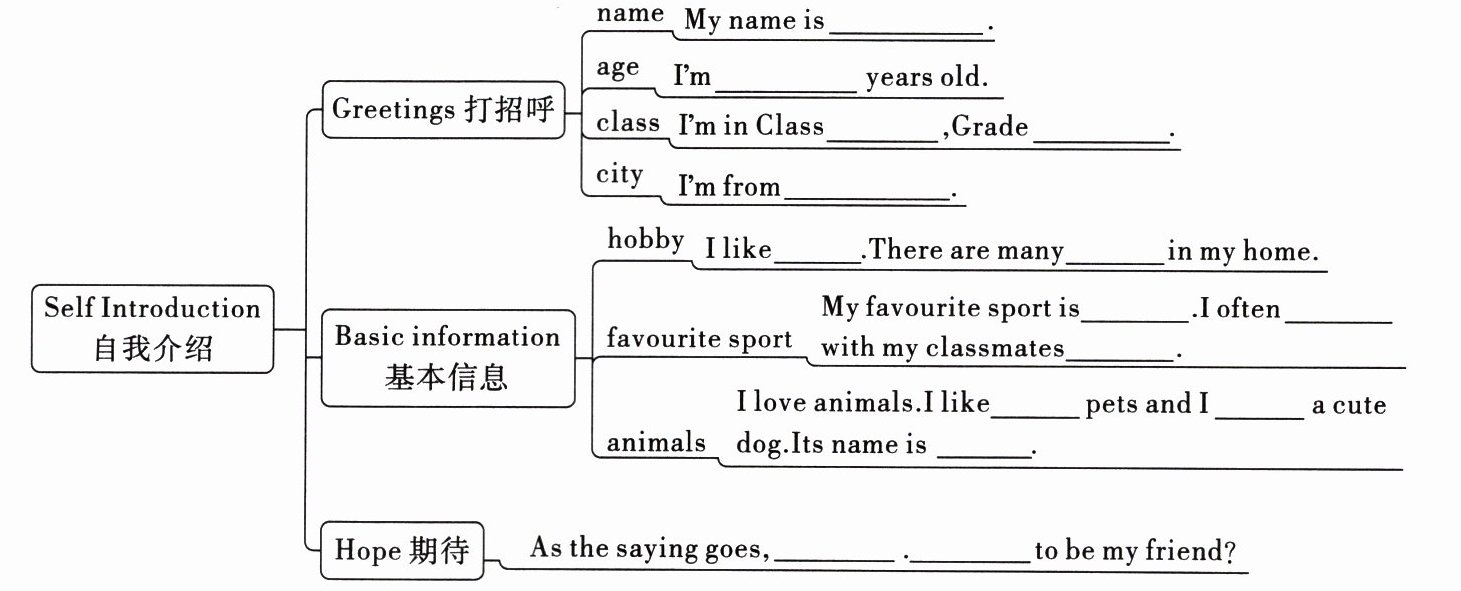 I have many hobbies. I like reading books, and there are many books in my home. My favourite sport is football. I often play football with my classmates on Sundays. I love animals. I like keeping pets and I have a cute dog. Its name is Feifei. (爱好)