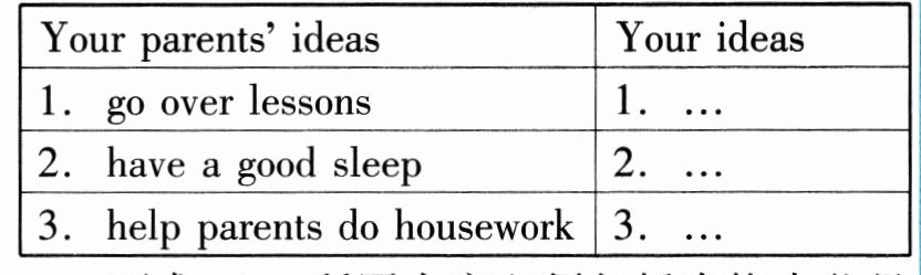 要求:1. 所写内容必须包括表格中父母的想法和你的至少三个想法。