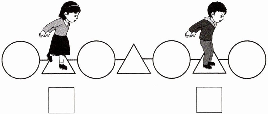 2. 单脚跳进○,双脚跳进△。跳对的画“√”,跳错的画“×”。