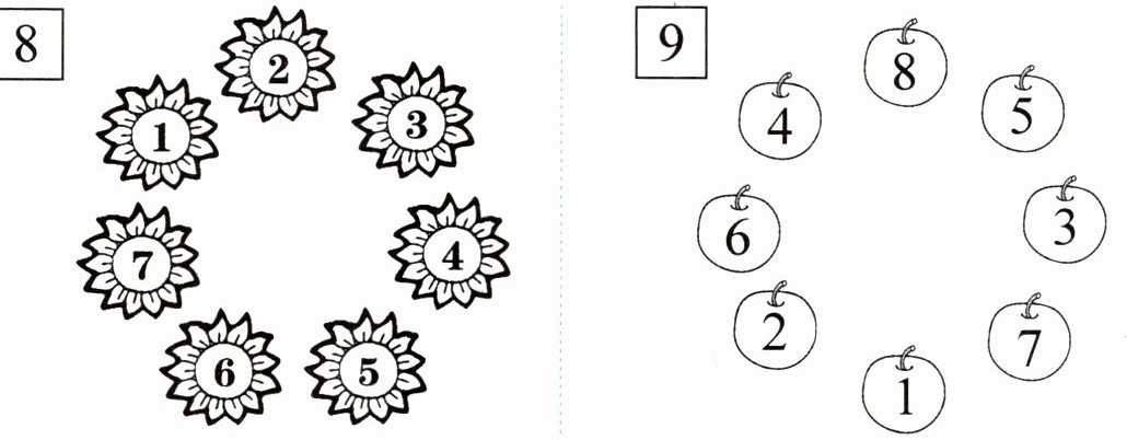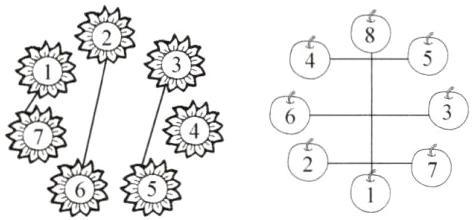 4. 把 8 个苹果分给小玉和小芳,可以怎样分?