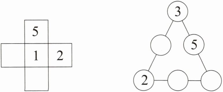 3. 填数,使每行、每列或每条线上的三个数相加都得9。