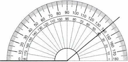 量角时,角的一条边和内圈$0^{\circ}$刻度线重合,就读内圈刻度;和外圈$0^{\circ}$刻度线重合,就读外圈刻度。