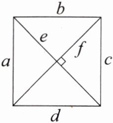 $a// c$,$b// d$;$a\perp b$,$a\perp d$,$b\perp c$,$c\perp d$,$e\perp f$。(各写出一组即可)