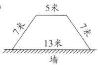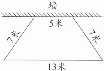 7. 张大爷种了一块梯形菜地,菜地的一面是墙,要在其他三面围上篱笆。这块梯形菜地的上底长 5 米,下底长 13 米,两腰各长 7 米,他只用了 19 米长的篱笆。你知道他是怎么围的吗?请你画一画,填一填。