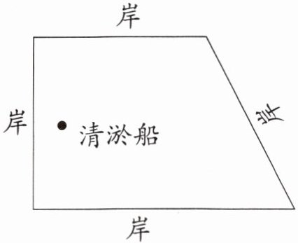 1. 一条清淤船正在清理人工湖中的污物,船上的人怎样才能尽快地把清理出来的污物送到岸上?请在图中画出来。