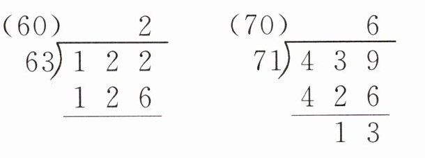 $\begin{array}{r} 6 \\ 71\enclose{longdiv}{439} \\ 426 \\ \hline 13 \end{array} $