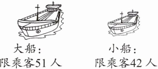 (2)260÷42=6(艘)……8(人) 6+1=7(艘) 答:至少需要准备7艘小船。