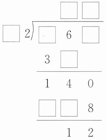除数十位3,商十位1、个位4,被除数百位4、个位0,第一步积个位2,第二步积百位1、十位2。