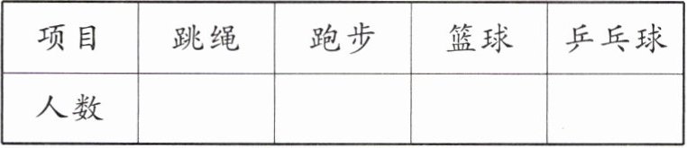 2. 下面是四(1)班同学最喜欢的运动项目情况。