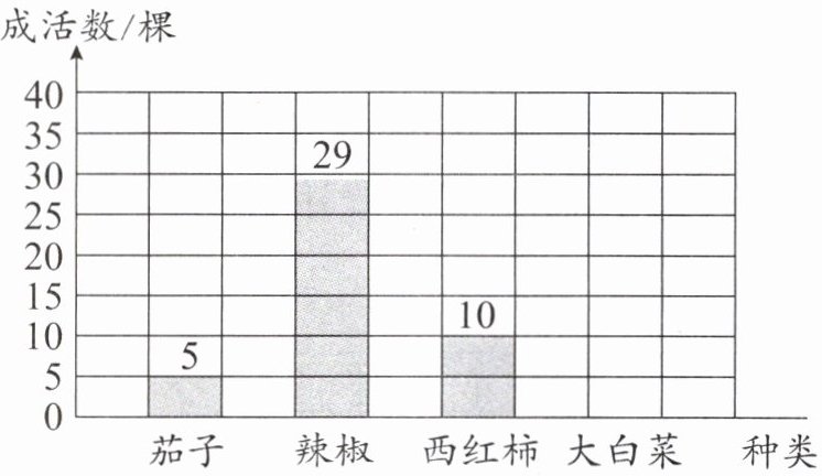 (2)大白菜成活的棵数是茄子的7倍,请将条形统计图补充完整。
