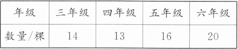(2)14+13+16+20=63(棵) 答:这四个年级的同学一共植树63棵。