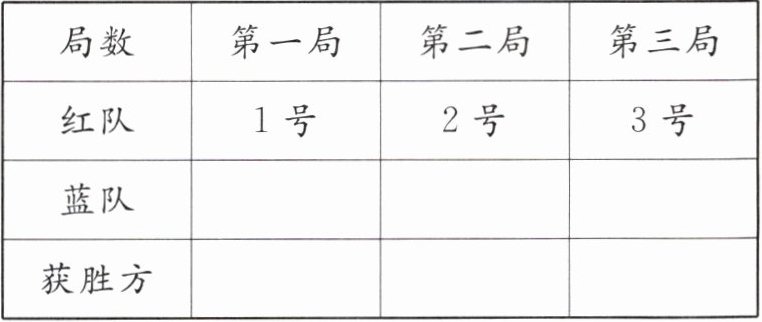 (2)若蓝队想取胜,则应该采取怎样的对阵策略?请填写下表。