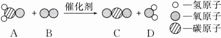 (1)甲醛的化学式为$CH_{2}O$,1个甲醛分子由1个碳原子、2个氢原子和1个氧原子构成,图中A物质1个分子由1个碳原子、2个氢原子和1个氧原子构成,所以表示甲醛分子的是A。