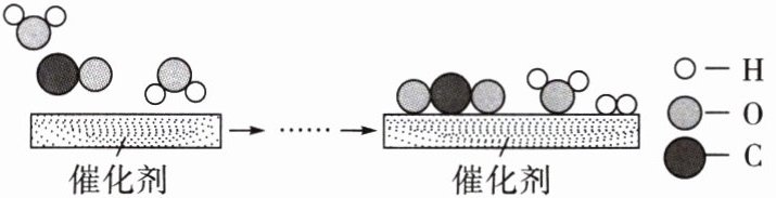 (3) 根据微观反应图,反应物是$H_2O$和$CO$,生成物是$H_2$和$CO_2$,反应条件是催化剂,所以化学方程式为$H_2O + CO\xlongequal{催化剂}CO_2 + H_2$。