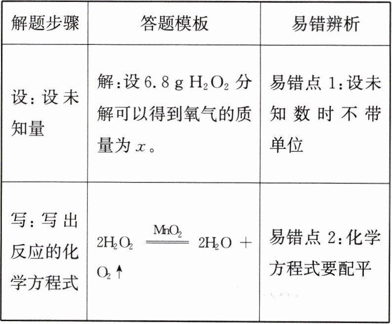 [练习] 如果将 6.8 g 过氧化氢在二氧化锰的催化作用下充分分解,试求制取氧气的质量。