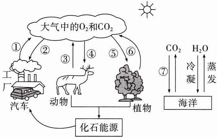 循环与另外两种循环有本质区别。(3)绿色植物通过光合作用将太阳能转化为______