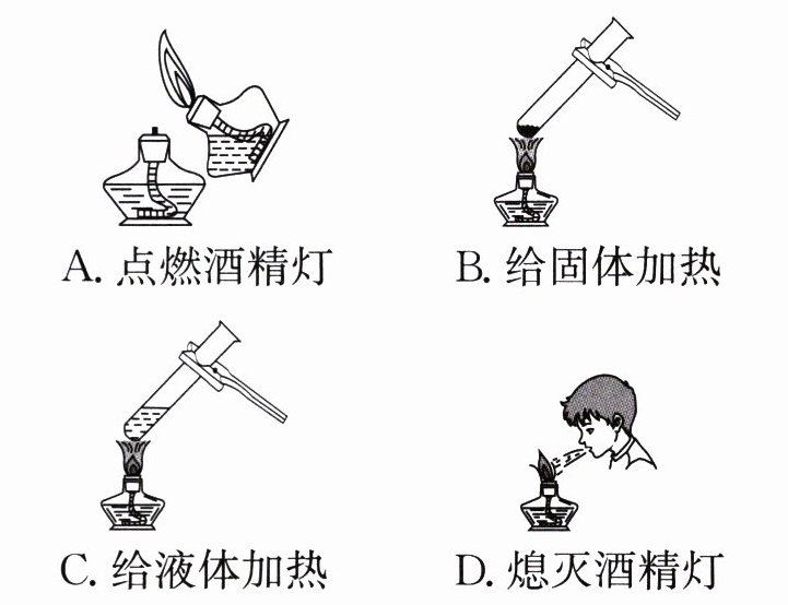 D:使用酒精灯时要注意“两查、两禁、一不可”,熄灭酒精灯时,不能用嘴吹灭酒精灯,应用灯帽盖灭,图中所示操作错误,故D选项错误。
