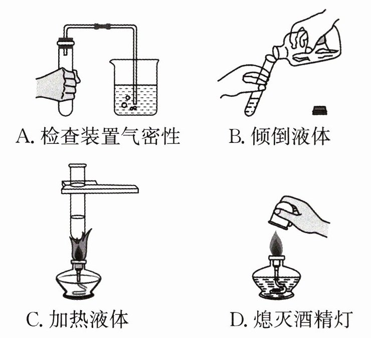 D选项:熄灭酒精灯时,用灯帽盖灭,这是正确的操作方法,故D选项正确。