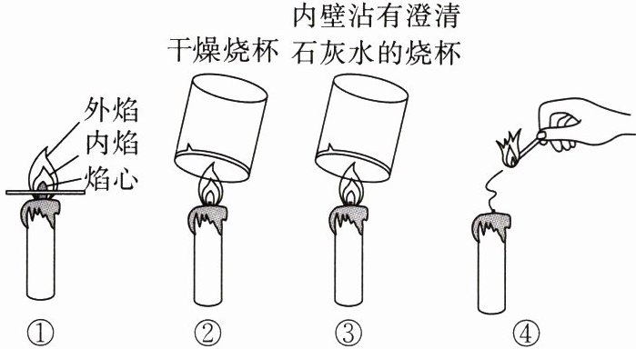 C.③内壁沾有澄清石灰水的烧杯,出现浑浊现象,说明石蜡燃烧生成二氧化碳