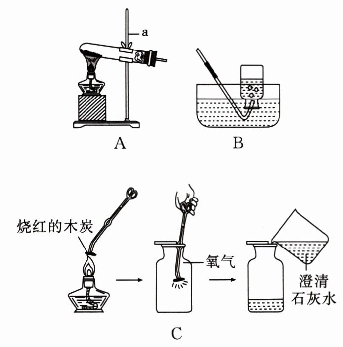 (填“熄灭酒精灯”或“把导管移出水槽”)。(3)用上述收集的氧气完成如图 C 所示的实验,观察到澄清石灰水