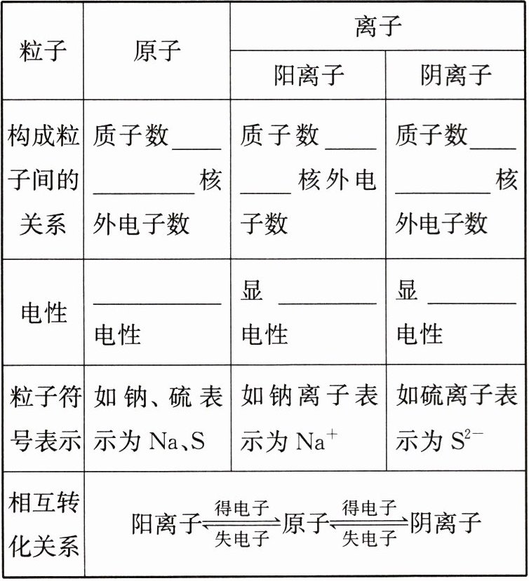 |相互转化关系|阳离子$\xrightleftharpoons[失电子]{得电子}原子\xrightleftharpoons[失电子]{得电子}$阴离子|