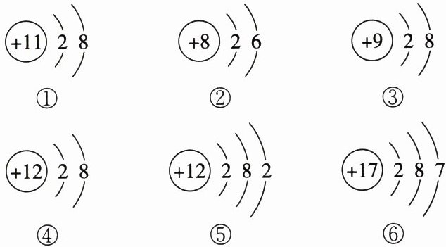 ③质子数为9,核外电子数为$2+8=10$,质子数小于核外电子数,所以③是阴离子。