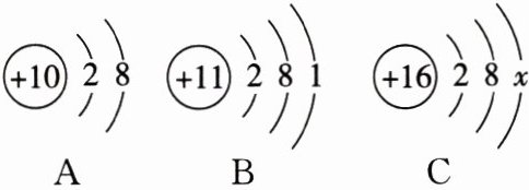 (3)当质子数=核外电子数,为原子,若C是原子,则$16 = 2 + 8 + x$,$x = 6$。
