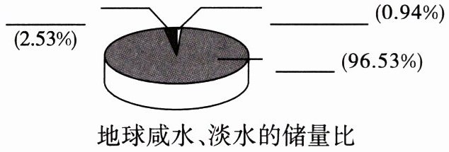 本题主要考查对水资源相关数据的记忆和理解。地球表面海洋覆盖面积约为71%;世界水资源总储量丰富,但可直接利用的淡水量很少;我国水资源总量为 2.8 万亿立方米,但人均水资源量只有世界平均水平的四分之一,约为 2300 立方米。