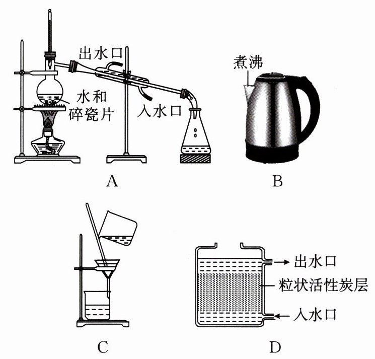 D选项,生活中通常采用煮沸的方法对自来水进行软化,因为煮沸可以使硬水中的钙、镁离子形成沉淀,从而降低水的硬度。而蒸馏是一种实验室常用的水的净化方法,它可以得到几乎纯净的水,但操作复杂且能耗较高,不适合在生活中大量使用,D选项错误。