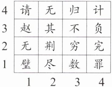 答案不唯一,示例:(4,3) (2,2) (1,4) (4,1) 负荆请罪