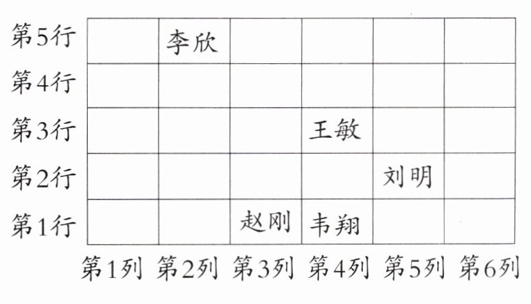 提示:张丽同学的位置在第6列、第4行,杨明同学的位置在第2列、第2行。