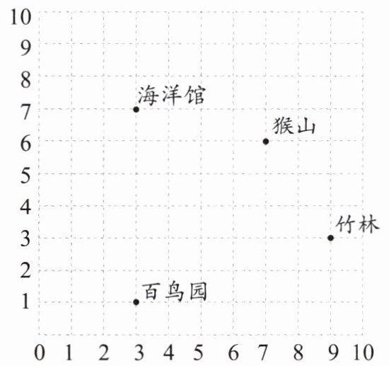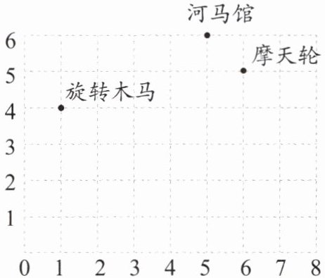 (1) 旋转木马的位置是( , ),河马馆的位置是( , ),摩天轮的位置是( , )。