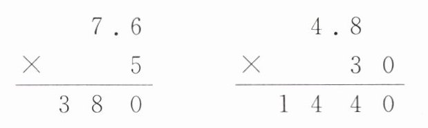 1. 小数乘整数的计算方法:先按照整数乘法算出积,再看因数中一共有几位小数,就从积的右边起数出几位,点上