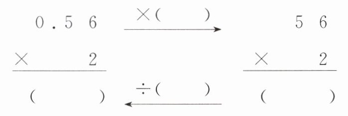 $0.56 & \xrightarrow{× (\quad)} & 56 \\$